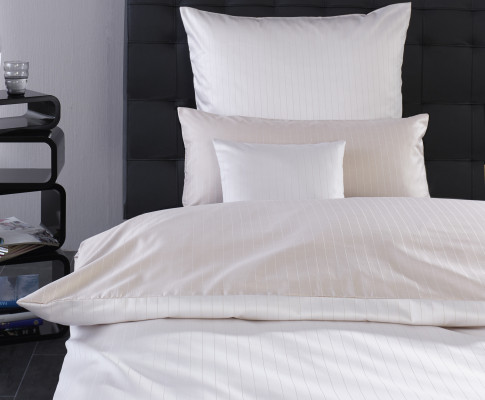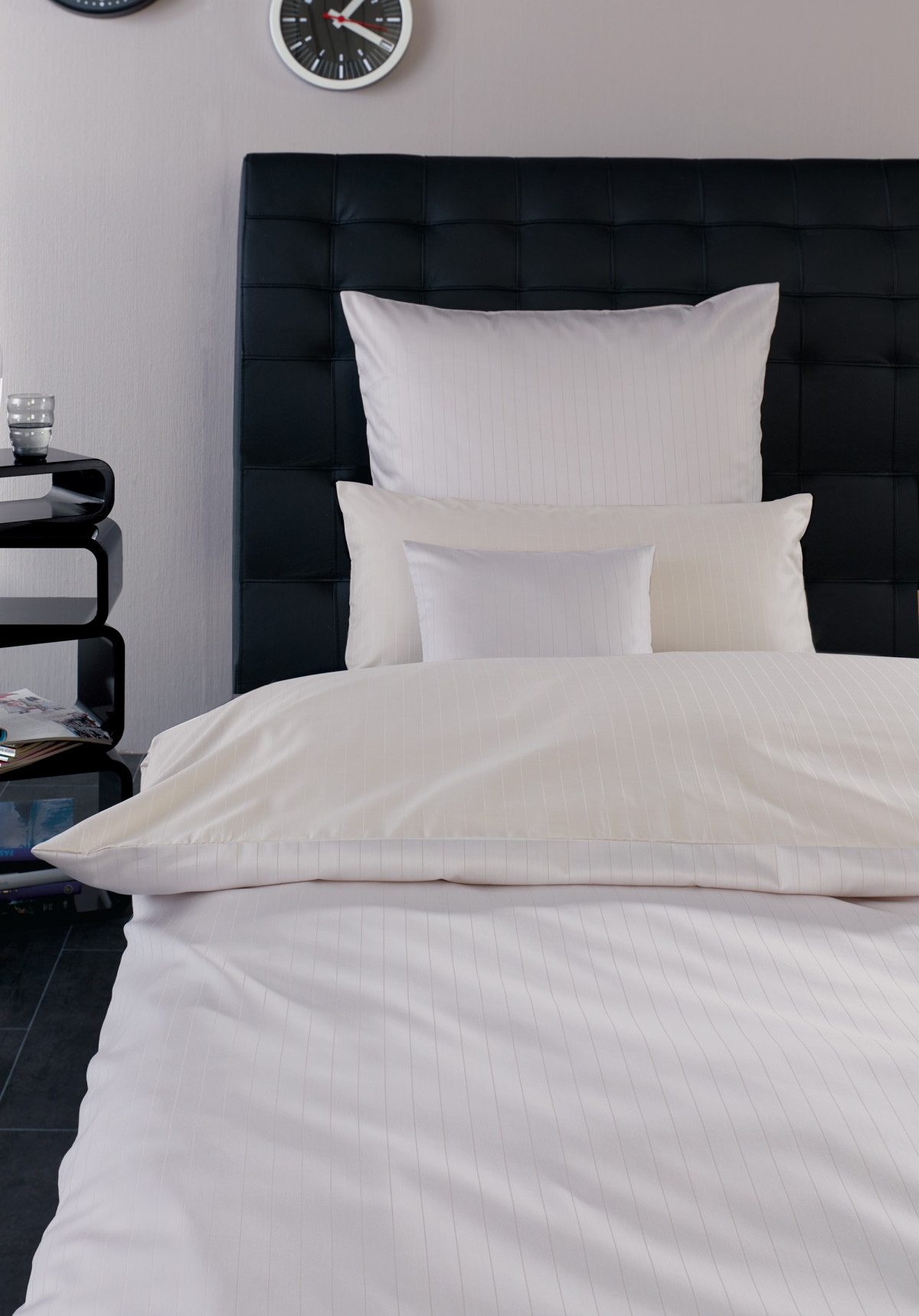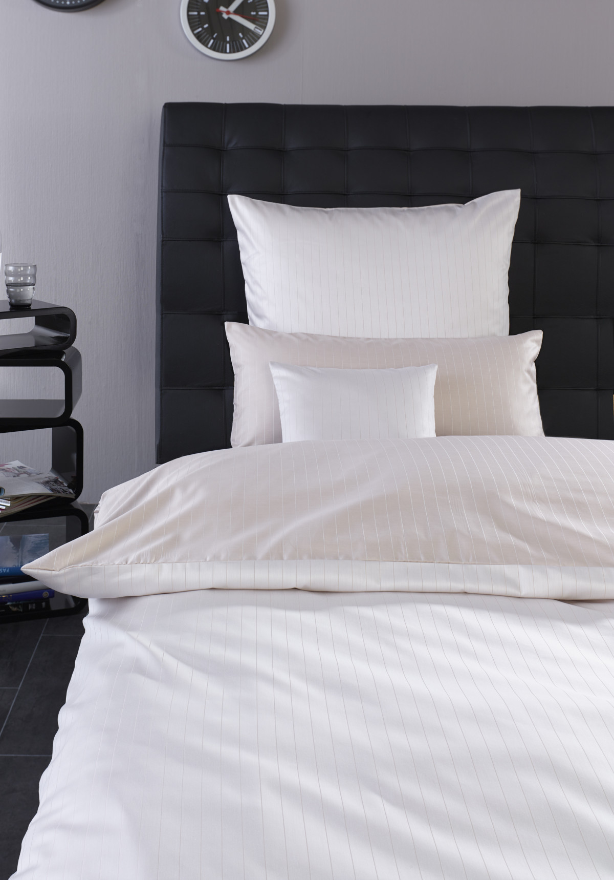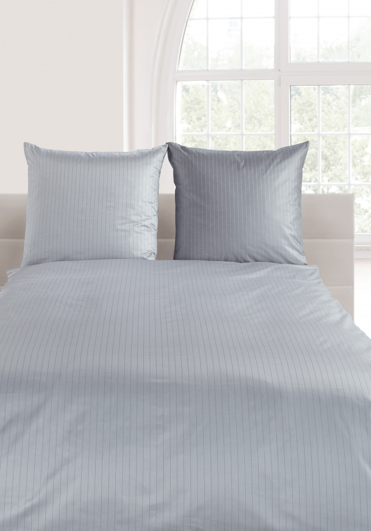 Diese buntgewebte, mercerisierte und bügelleichte Bettwäsche in Nadelstreifen-Optik ist bei 60°C maschinenwaschbar und trocknergeeignet.