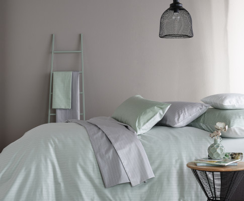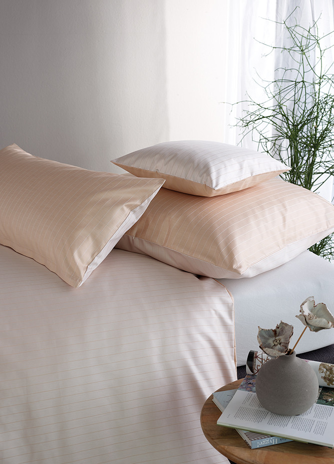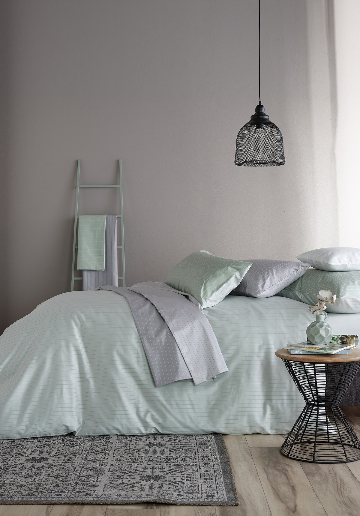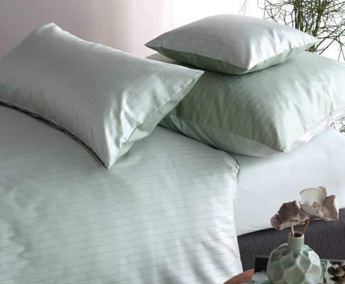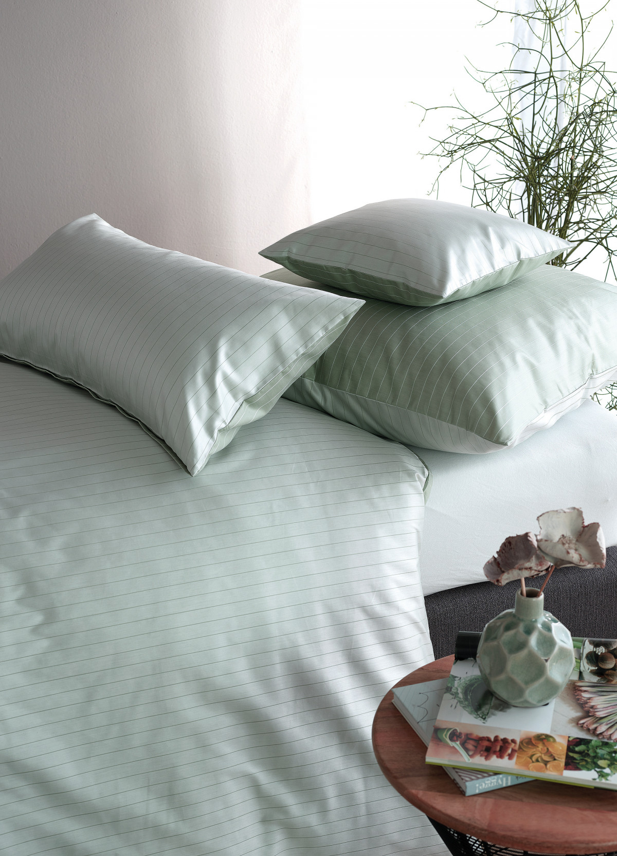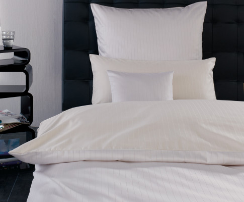 Diese buntgewebte, mercerisierte und bügelleichte Bettwäsche in Nadelstreifen-Optik ist bei 60°C maschinenwaschbar und trocknergeeignet.