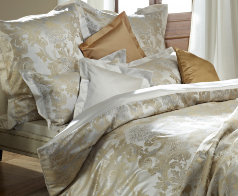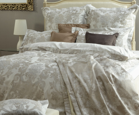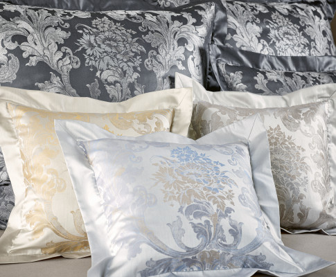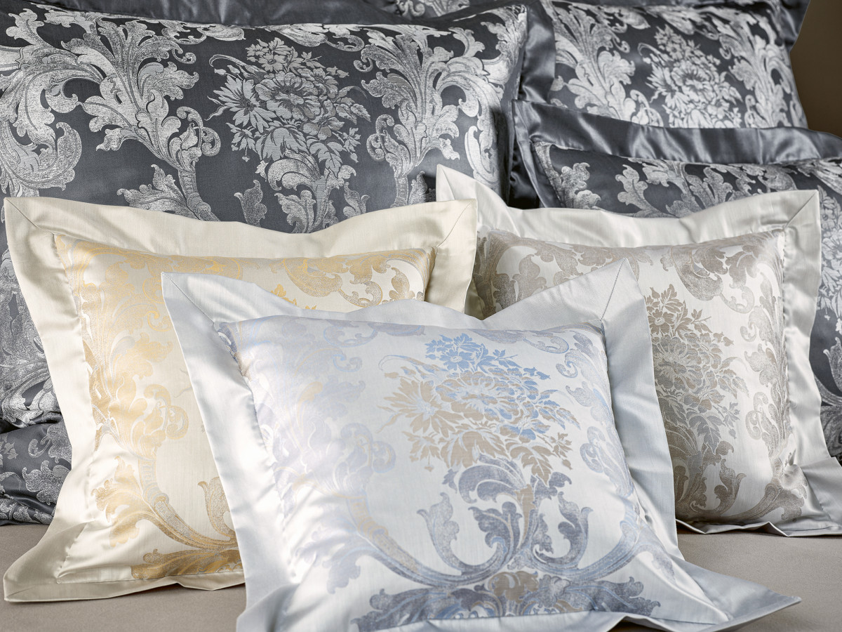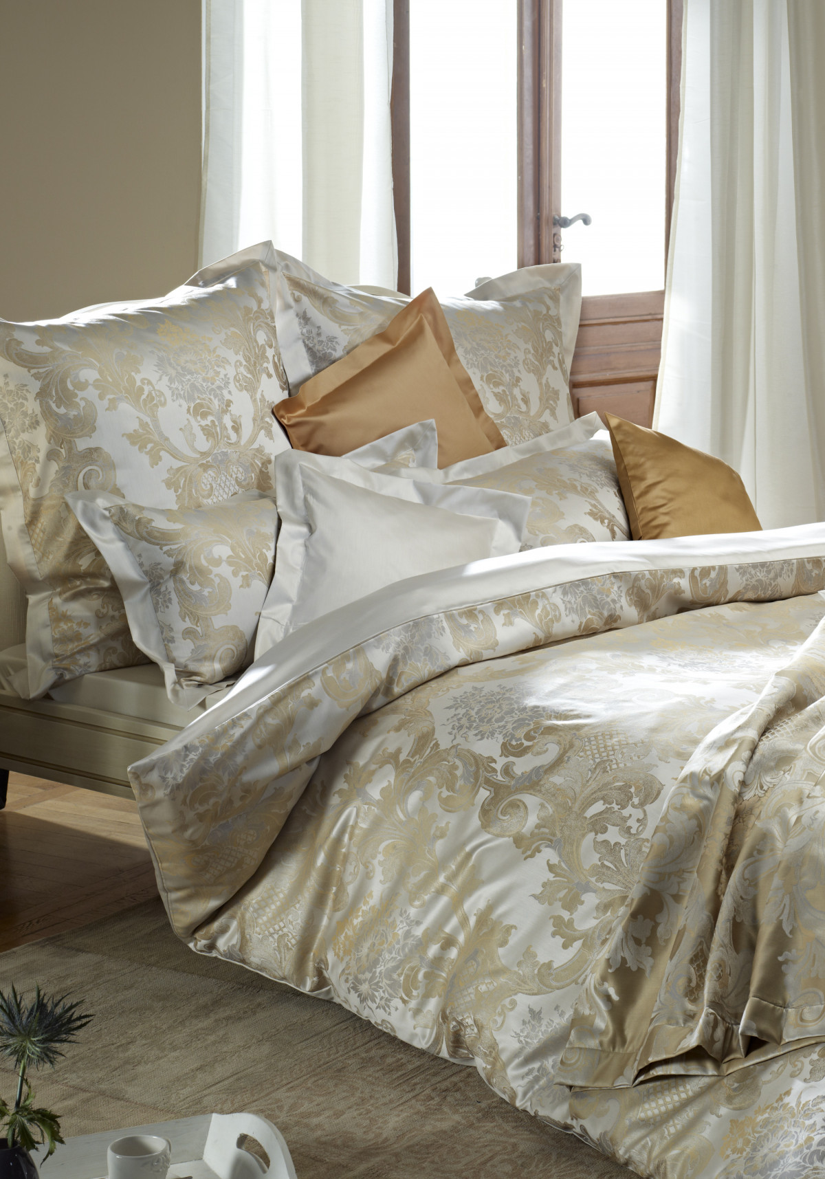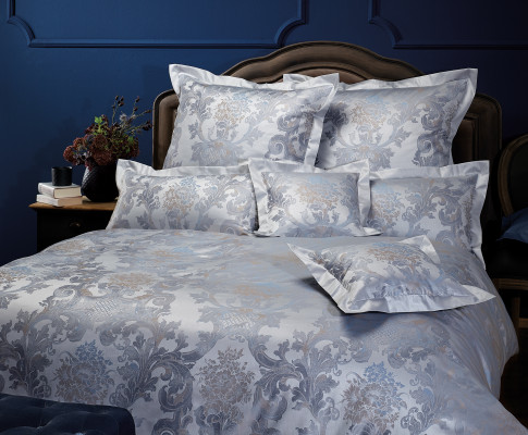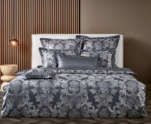 Die Mako-Brokat-Damast Bettwäsche LOUIS XIV. intendiert eine Hommage an den klassischen Damast; eine kunstvolle Inszenierung von opulenten floralen und ornamentalen Motiven in extravaganten Farbwelten. Durch den Einsatz von zwei Schussfarben wirken die Ornamente im Kontext zu den ruhigen Satinflächen im Grund besonders plastisch und offenbaren die herausragende Kompetenz der Jacquardweberei.