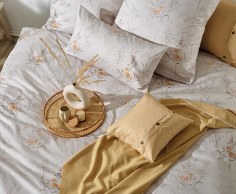Das Allover-Print-Dessin der Bettwäsche 6216 Softly gleicht einer sommerlichen Blumenwiese.