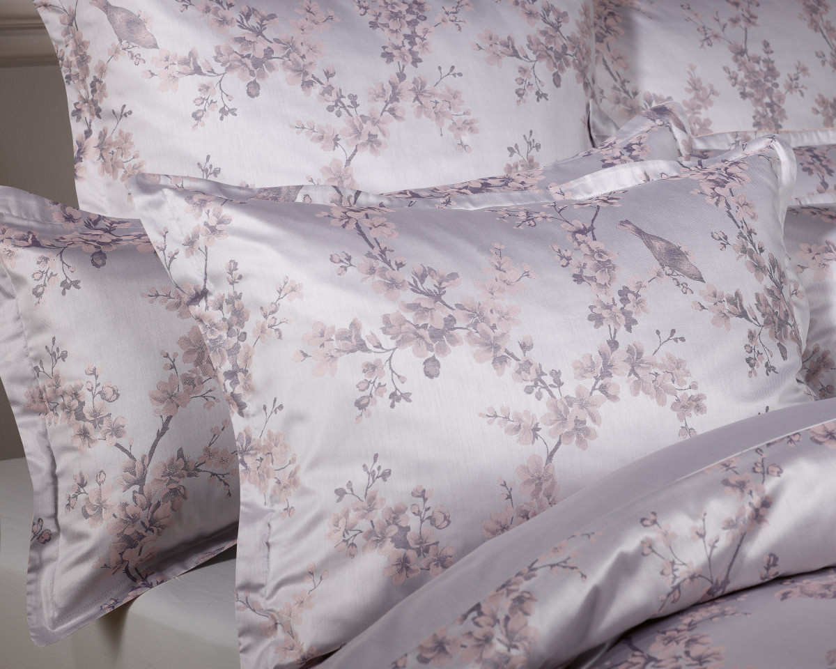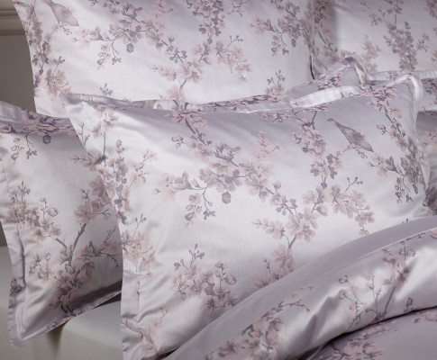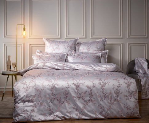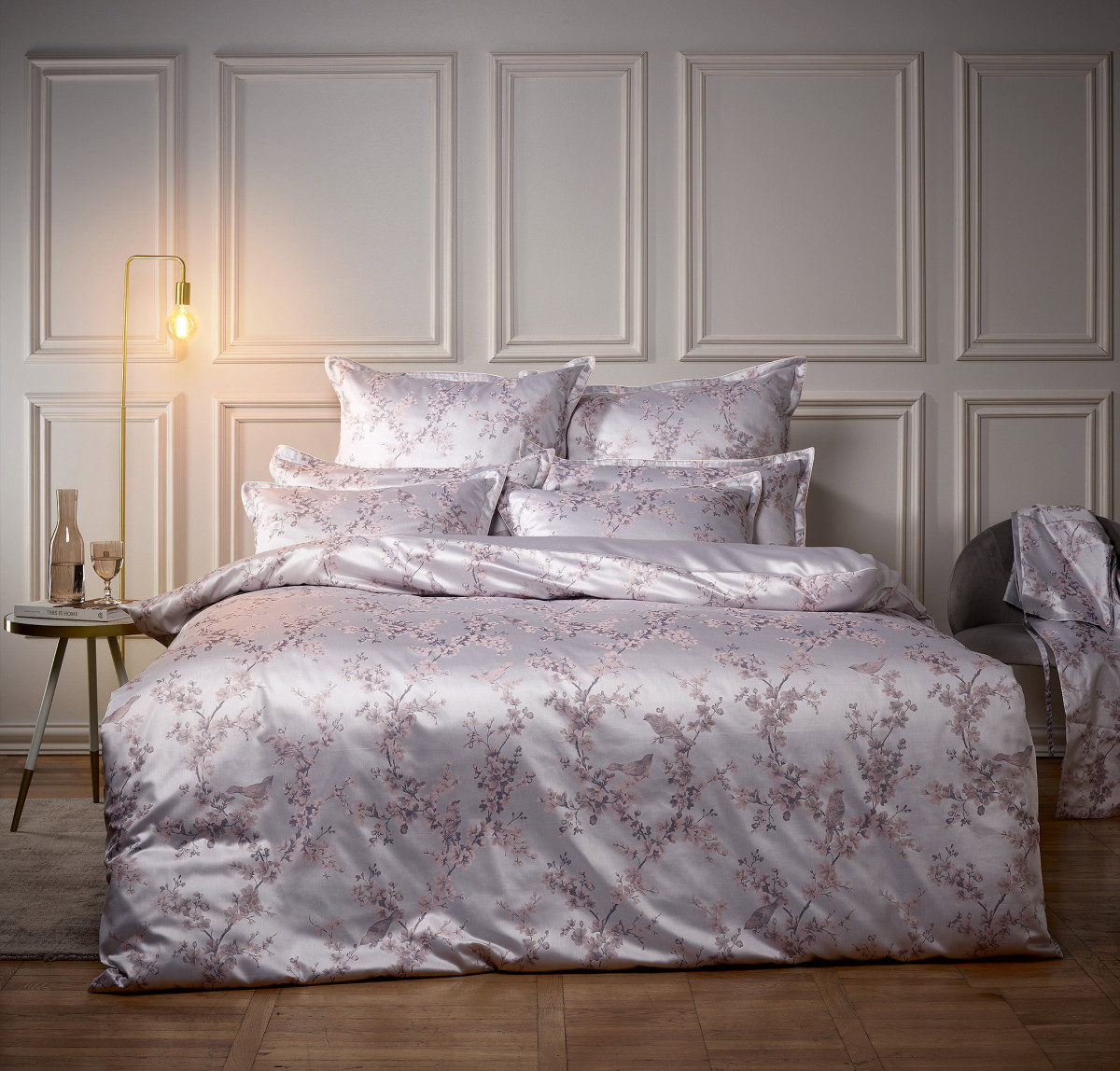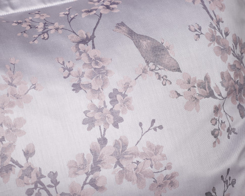 Die Mako-Brokat-Damast Bettwäsche CHERRY verführt zu einem romantischen Blick auf das japanische Kirschblütenfest Hanami. Auf einem unifarbenen Hintergrund tanzen die Sperlinge harmonisch auf den opulent verzweigten Kirschblütenästen und werden durch den Einsatz von 2 Schussfarben in ein idealistisches Farbspiel versetzt. Eine Reminiszenz an die Schönheit und Vergänglichkeit dieser Zeit.