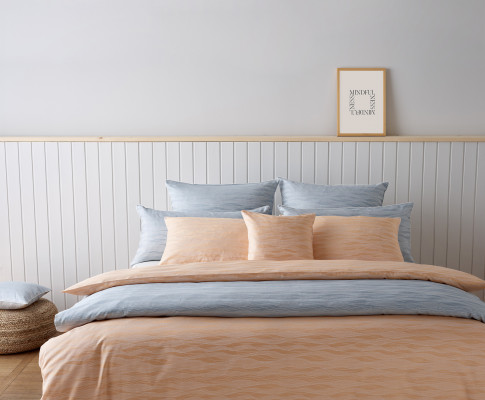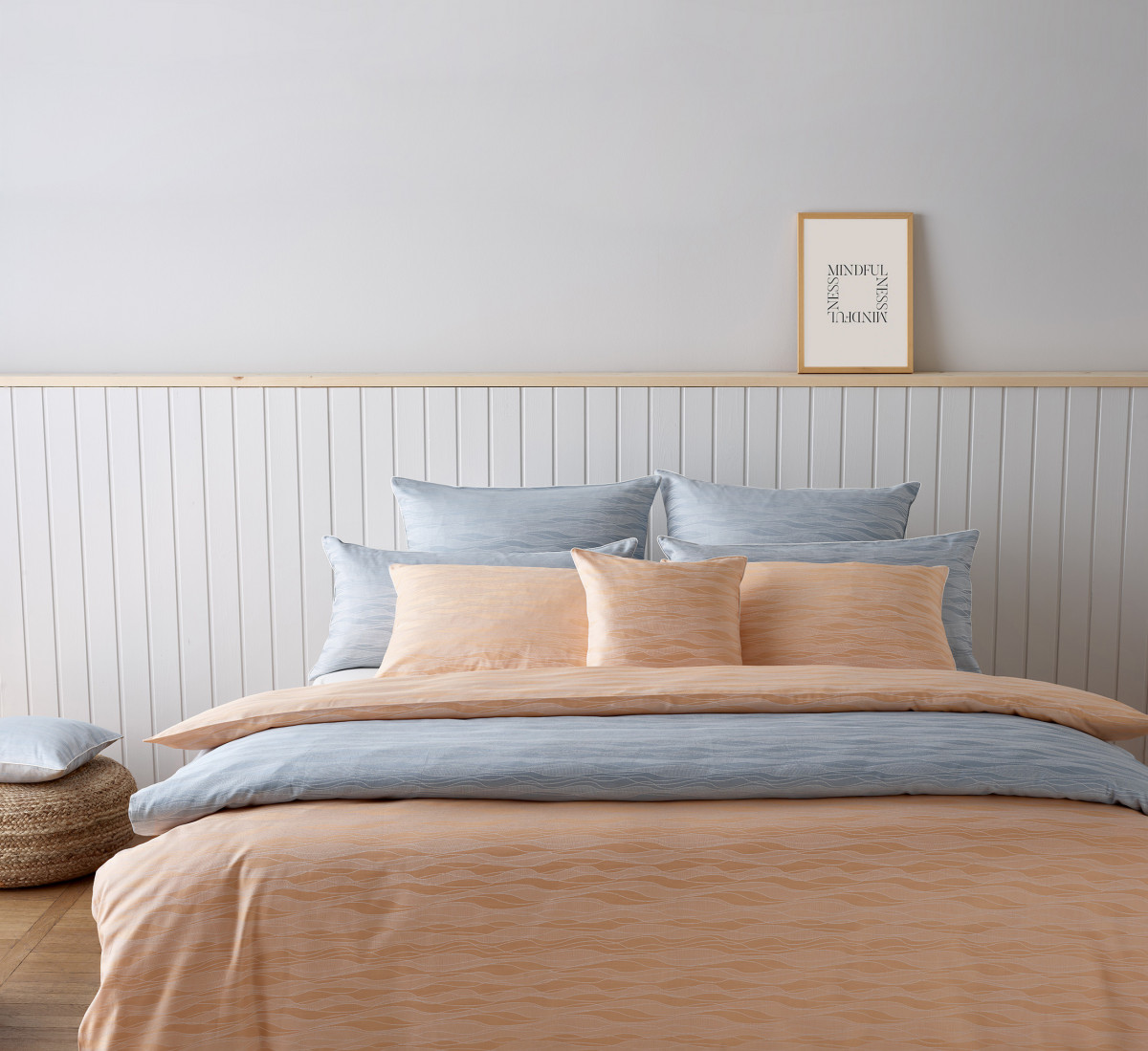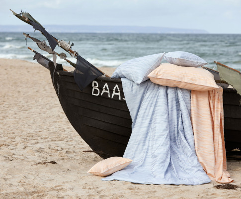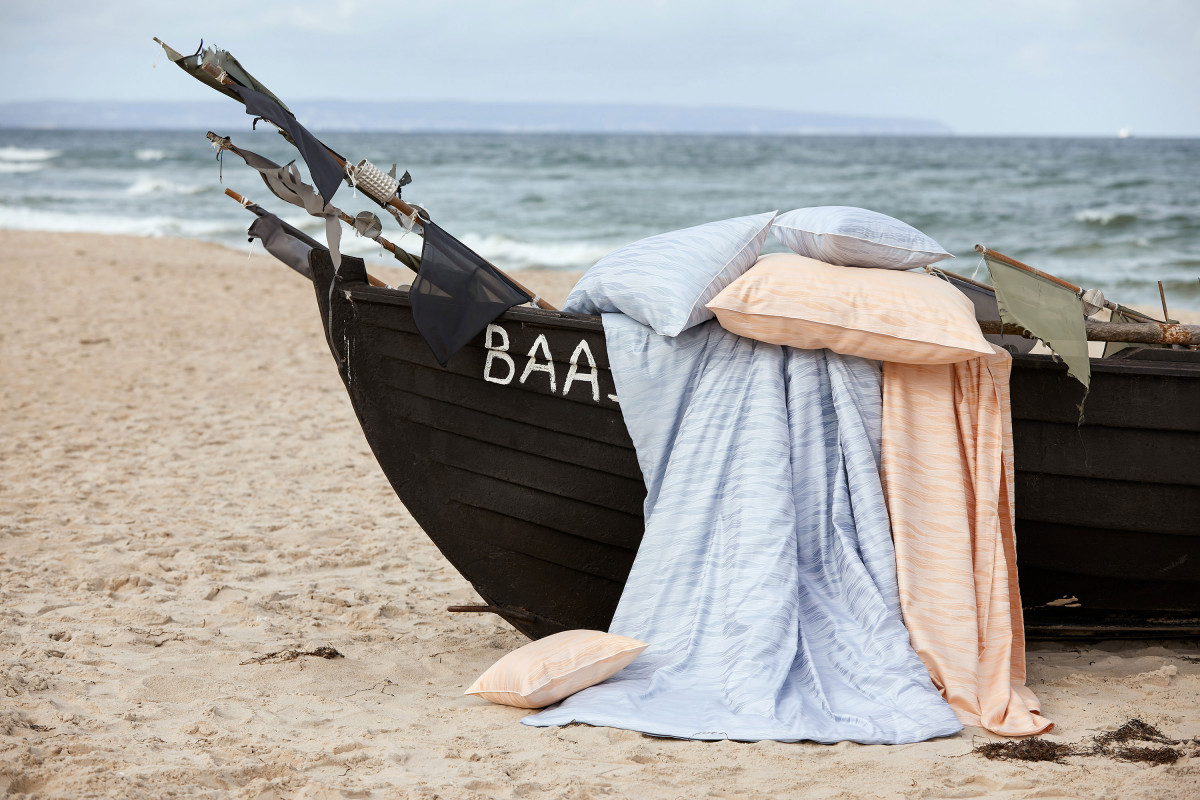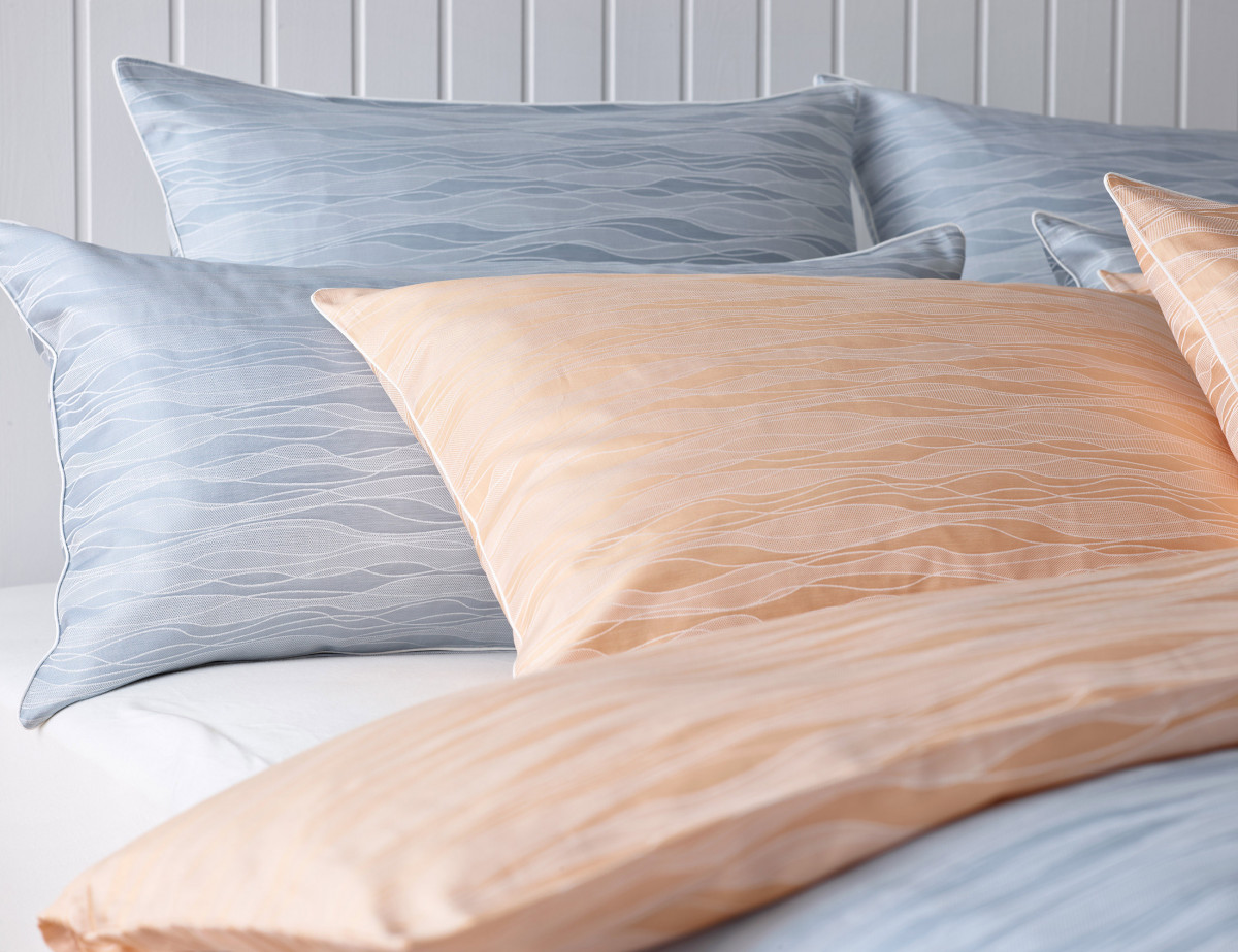 Die Mako-Brokat-Damast Bettwäsche SILENCE erinnert an einen Tag am Meer.