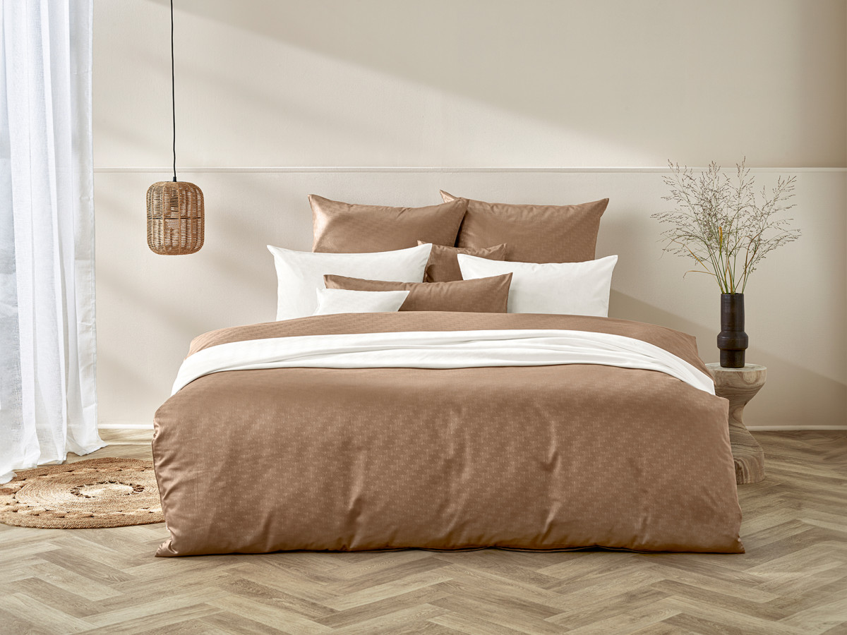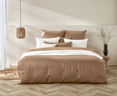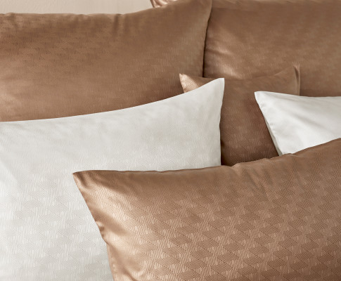 Die geometrische Formsprache der Mako-Brokat-Damast Bettwäsche ALVA gleicht einem System aus Linien, das wie ein Labyrinth endlos ineinander übergeht. Offwhite oder Terra: das monochrome Farbspiel erschafft eine gleichermaßen zurückhaltende als auch moderne Atmosphäre, dem sich das eingewobene Muster durch Matt-Glanz-Effekte unterordnet.