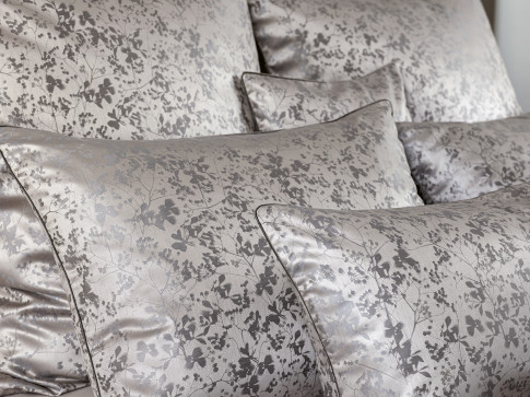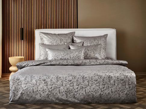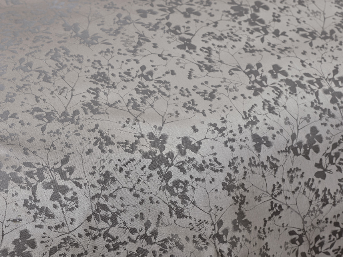 Diese einzigartigen, mittels Cyanotypie entwickelten floralen Formen in der Mako-Brokat-Damast Bettwäsche NORA setzen sich zu einem abstrakten Blütenmeer zusammen. In der Farbstellung „graugold“ werden auf farbigem Grund sowohl liebevoll abschattierte Knospen-Zweige in Szene gesetzt als auch einzelne Formen webtechnisch durch Köperbindungen akzentuiert.