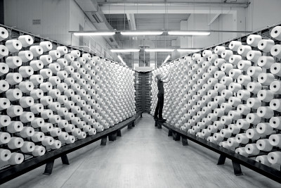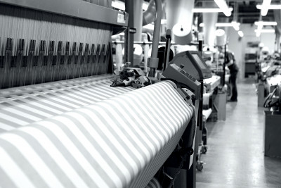 In der Appretur werden wichtige Gebrauchseigenschaften, wie zum Beispiel eine Bügelleicht-Fixierung, durch hochtechnische Anlagen erzielt.
