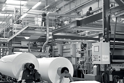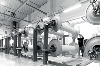 Durch den Kalander erhält die Ware ihren gewünschten Griff und Glanz.