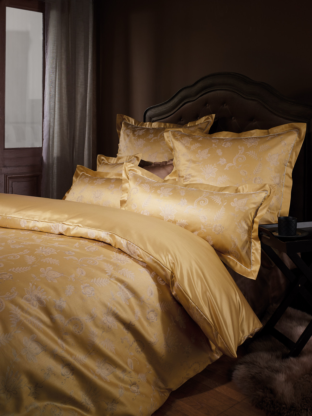 Abgerundet wird das Dessin durch eine Uni-Rückseite, einen 4-seitigem 5 cm Uni-Stehsaum mit Paspel am Stehsaumansatz an allen Kissenhüllen sowie Qualitäts-Reißverschlüssen.