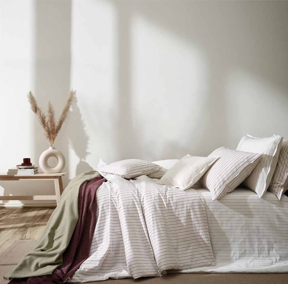Der klassisch unkomplizierte Streifen-Look macht das Dessin 9027 Gentle zu einem stilsicheren Highlight in jedem Schlafzimmer.