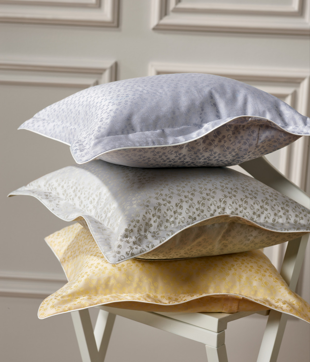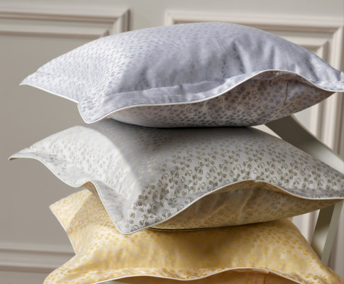 Das Mako-Brokat-Damast Zierkissen STACY ist in den Fabstellungen „english green“, „french blue“ und „zitrone“ erhältlich und ein passender Kombinationsartikel zur Mako-Brokat-Damast Bettwäsche GRACIE. Das dekorative Minimalmuster ziert eine sich wiederholende Blätterranke und wird als 40x40-Zierkissen mit Stehsaum und weißer Paspel am Stehsaumabschluss konfektioniert.