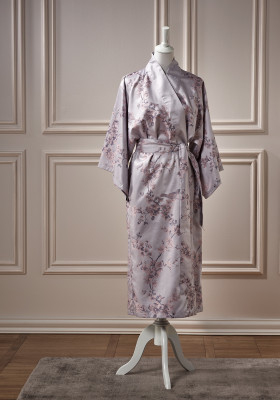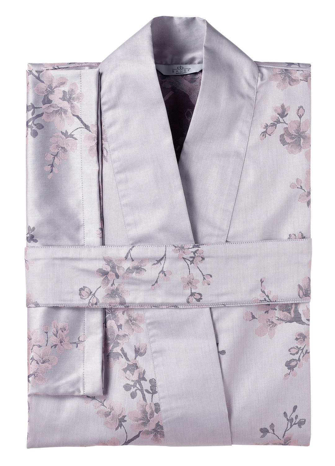 Der edle und leichte Baumwolldamast im schlichten Kimonoschnitt mit unifarbener Blende sorgt für ein angenehmes Hautgefühl und ist mittlerweile ein Klassiker geworden.