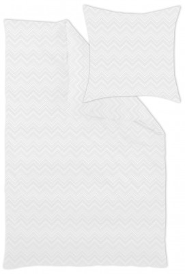 Das geometrische Muster der Mako-Brokat-Damast Bettwäsche 9032 TILDA ist wie ein Zickzack geformt, der durch verschiedene Schmuckelemente unterbrochen wird.