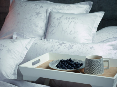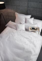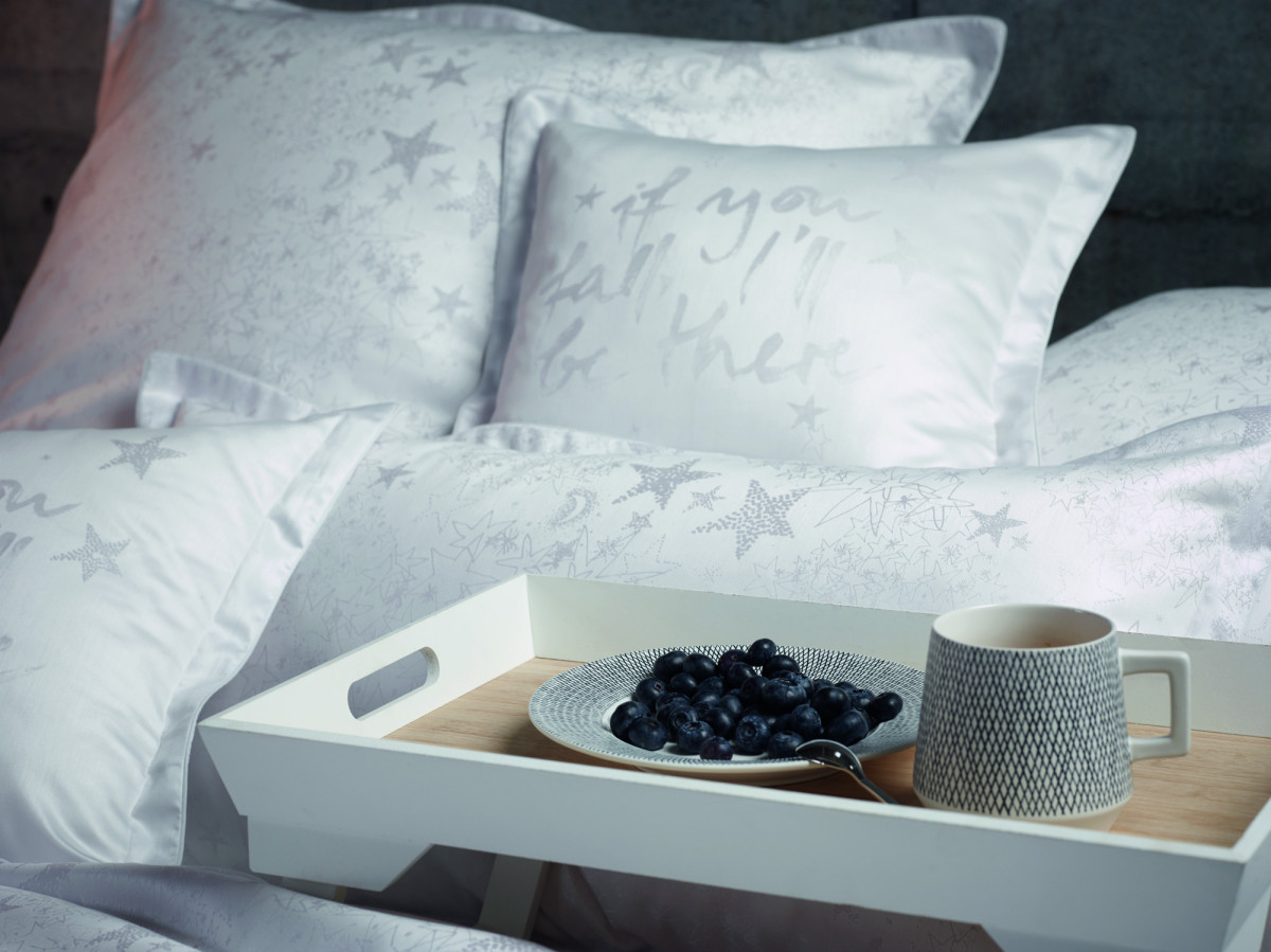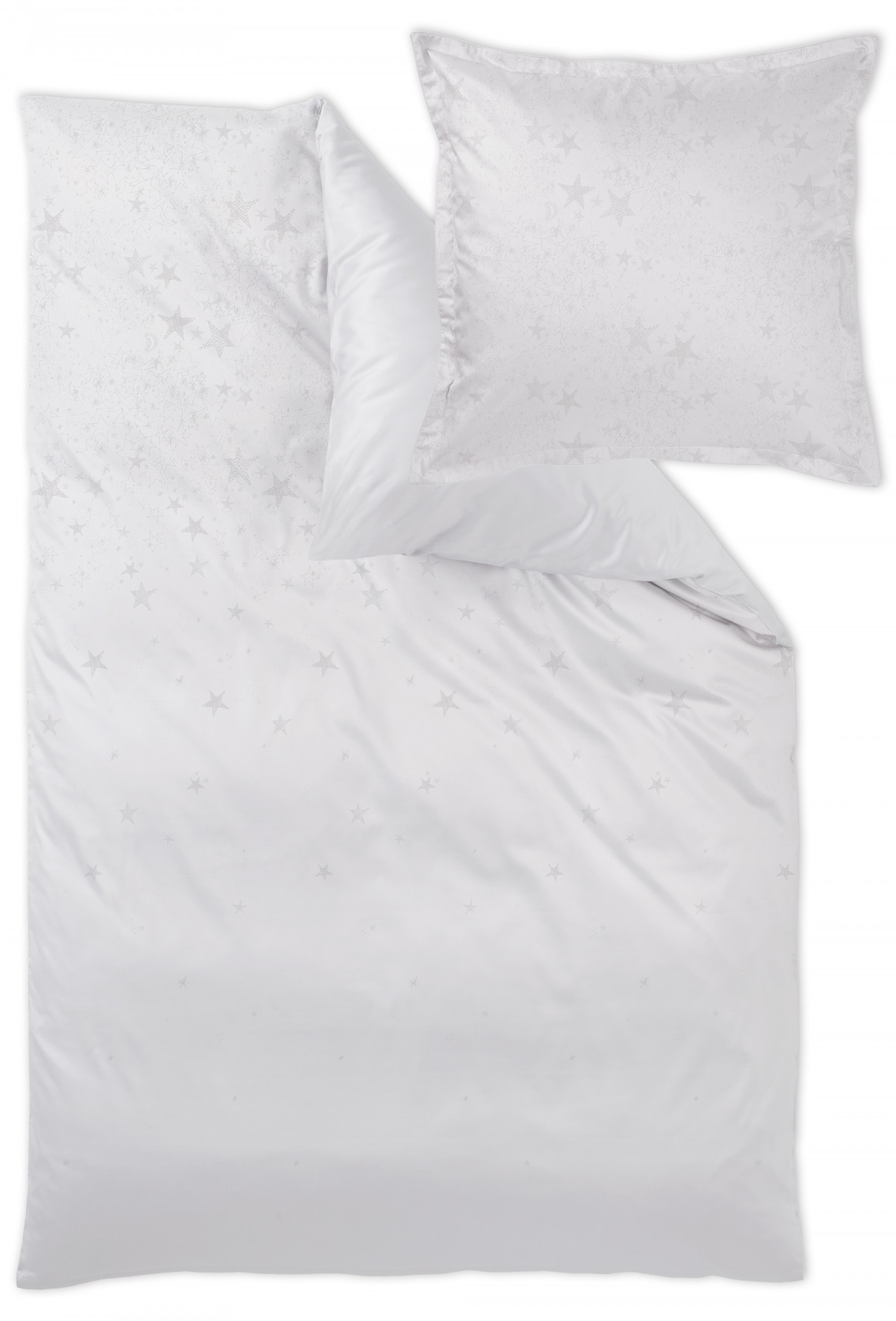 Das grafische Sternen-Dessin Stella ist als Wendebettwäsche, mit einer Uni-Rückseite konfektioniert.